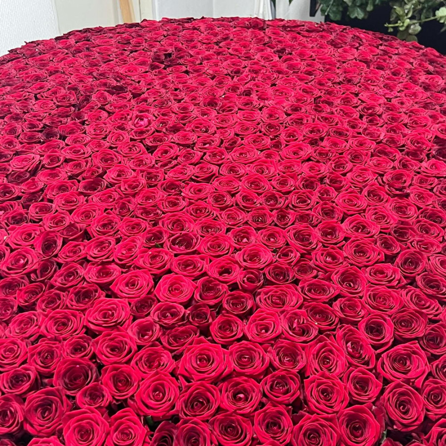 На фото букет из 1001 красной розы в корзине «величие». В составе: роза 1001 шт, корзина (xl) 1 шт, оазис флористический 15 шт, . Все цветы свежие и ароматные, букет красиво оформлен и отлично подходит для подарка. Доступна доставка цветов или самовывоз.