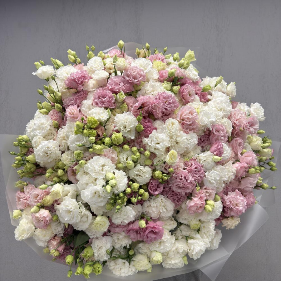 Букет из 101 эустомы розового и белого цвета в Бежецке