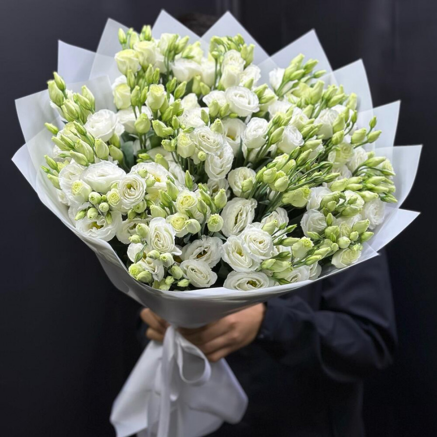 На фото букет 19 белых эустом. В составе: эустома (лизиантус) 19 шт, дизайнерская упаковка 3 шт, атласная лента 2 шт, . Все цветы свежие и ароматные, букет красиво оформлен и отлично подходит для подарка. Доступна доставка цветов или самовывоз.