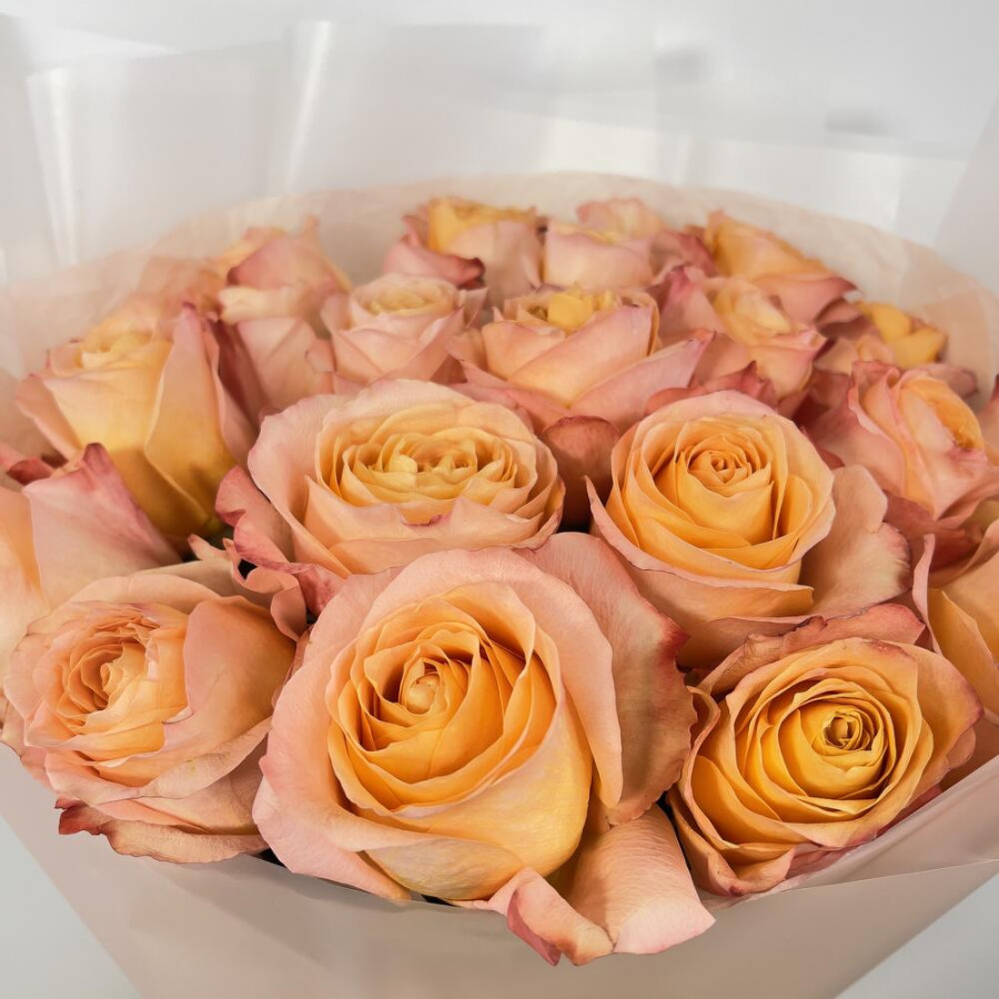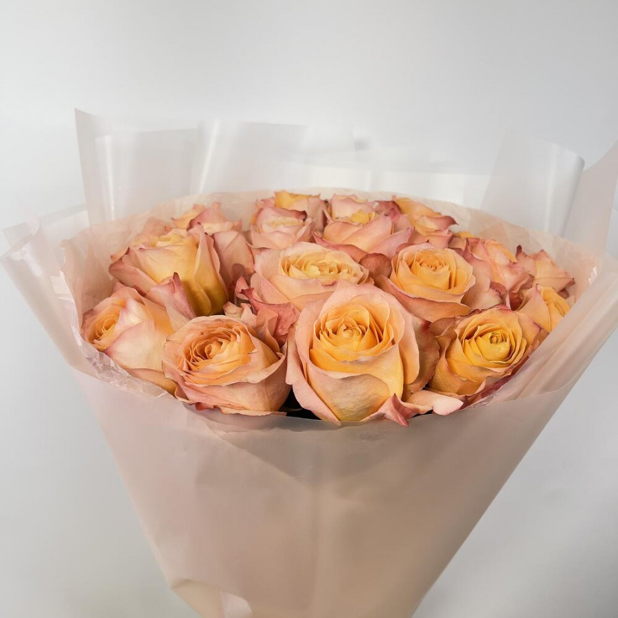 На фото букет из 23 коралловых роз. В составе: роза 23 шт, дизайнерская упаковка 1 шт, атласная лента 1 шт, . Все цветы свежие и ароматные, букет красиво оформлен и отлично подходит для подарка. Доступна доставка цветов или самовывоз.