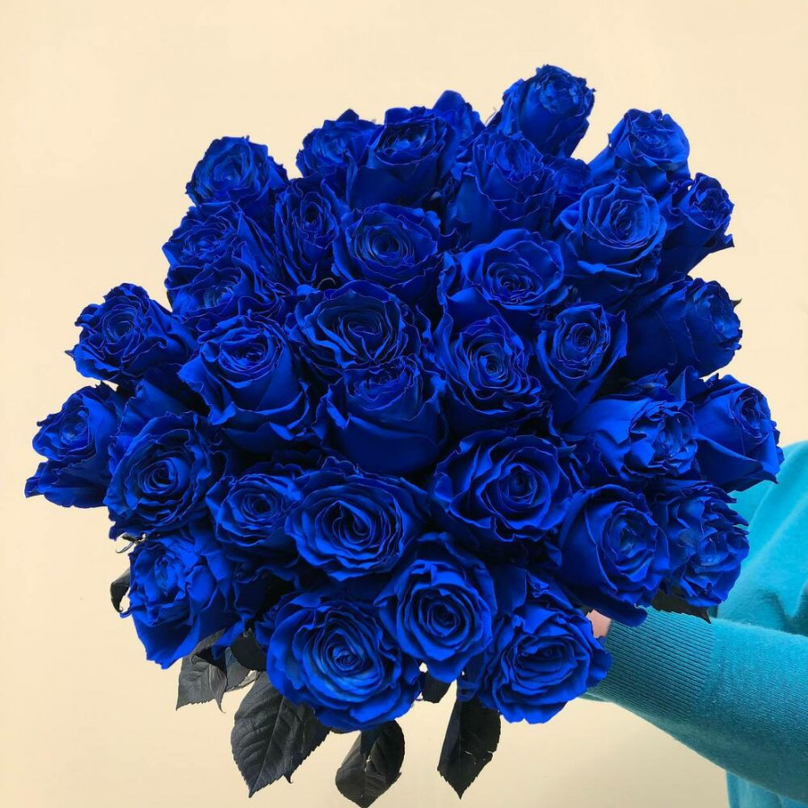 Монобукет из 31 синей розы «Ультрамарин»