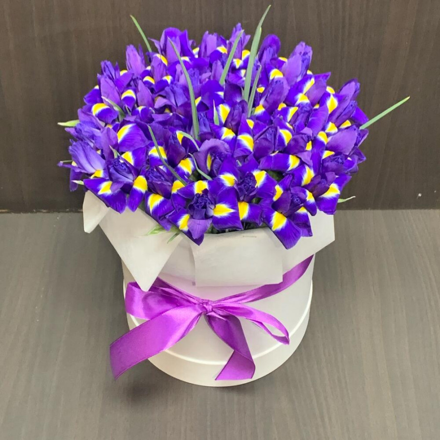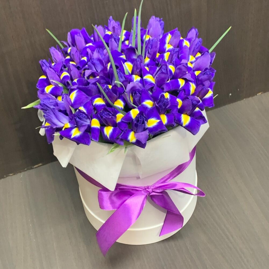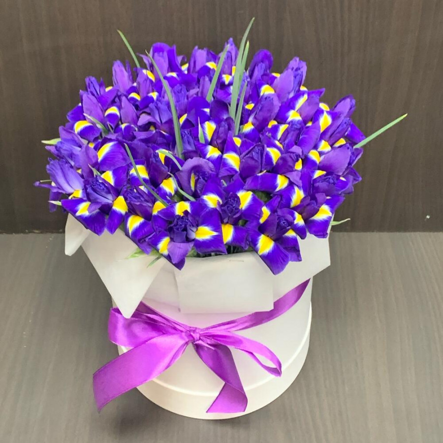 51 фиолетовый ирис в шляпной коробке в Бежецке