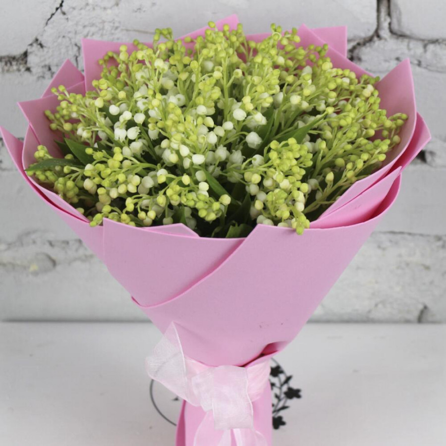 На фото букет из 101 ландыша. В составе: ландыш 101 шт, фоамиран 4 шт, атласная лента 2 шт, . Все цветы свежие и ароматные, букет красиво оформлен и отлично подходит для подарка. Доступна доставка цветов или самовывоз.